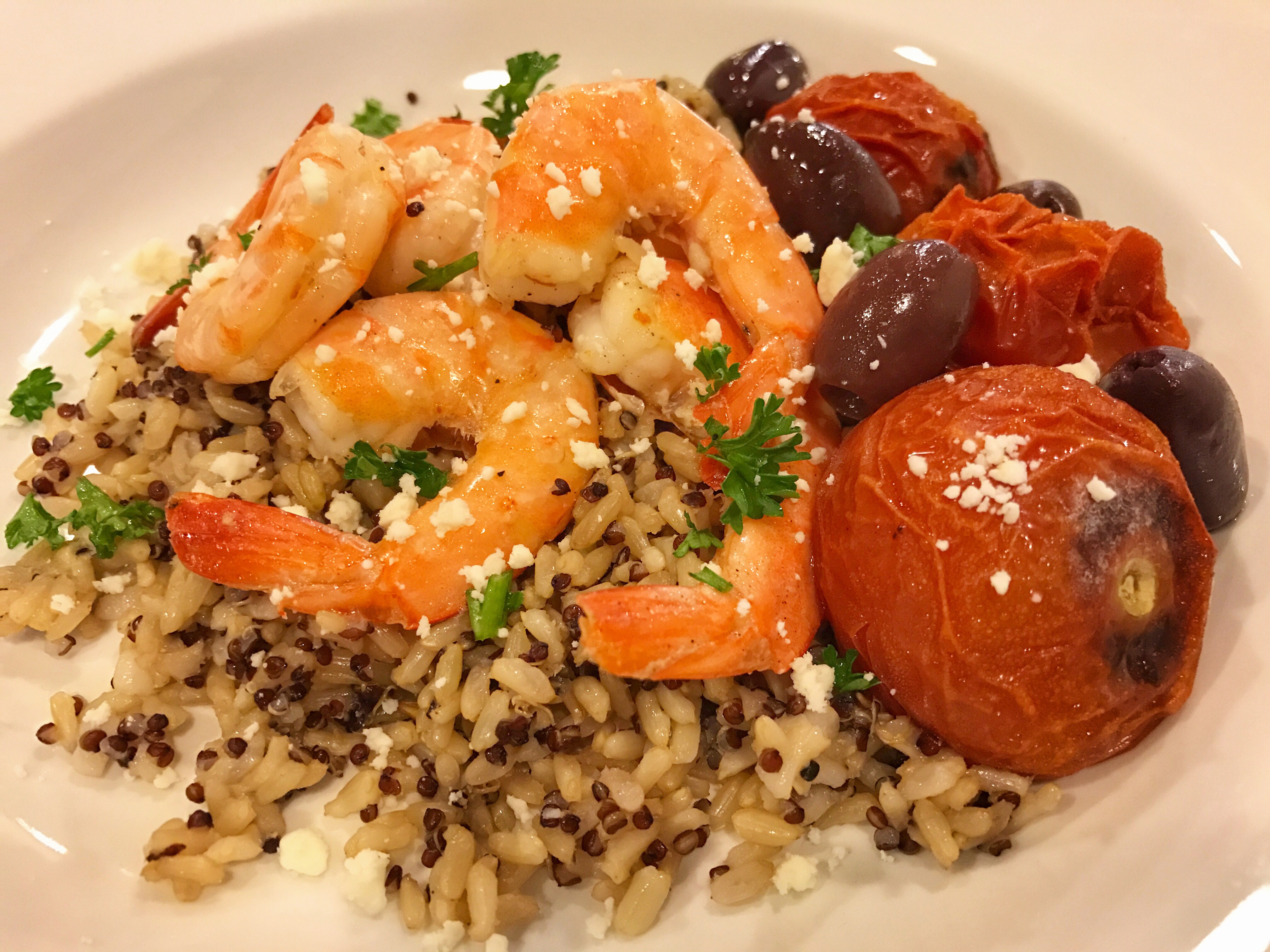 Mediterranean shrimp with feta, olives and oregano